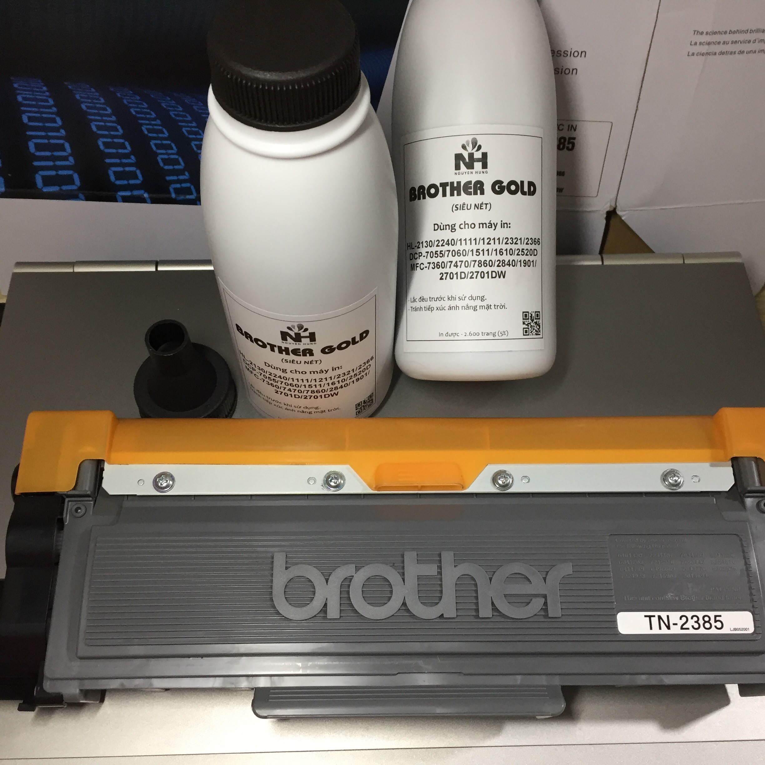 - Sử dụng hộp mực in TN-2385 phôi CHÍNH HÃNG giúp máy in bền hơn, cho bản in sắc nét, không lặp lại chữ, không xạm nền bản in.